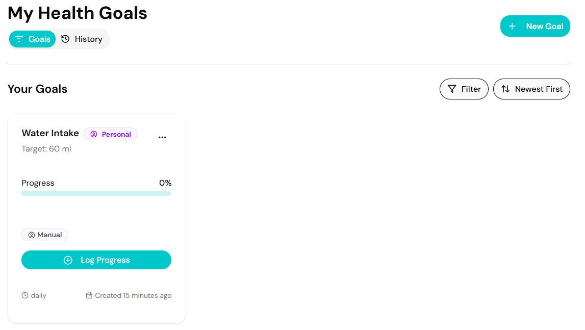 - Filter Options: View all goals, provider goals only, or personal goals only