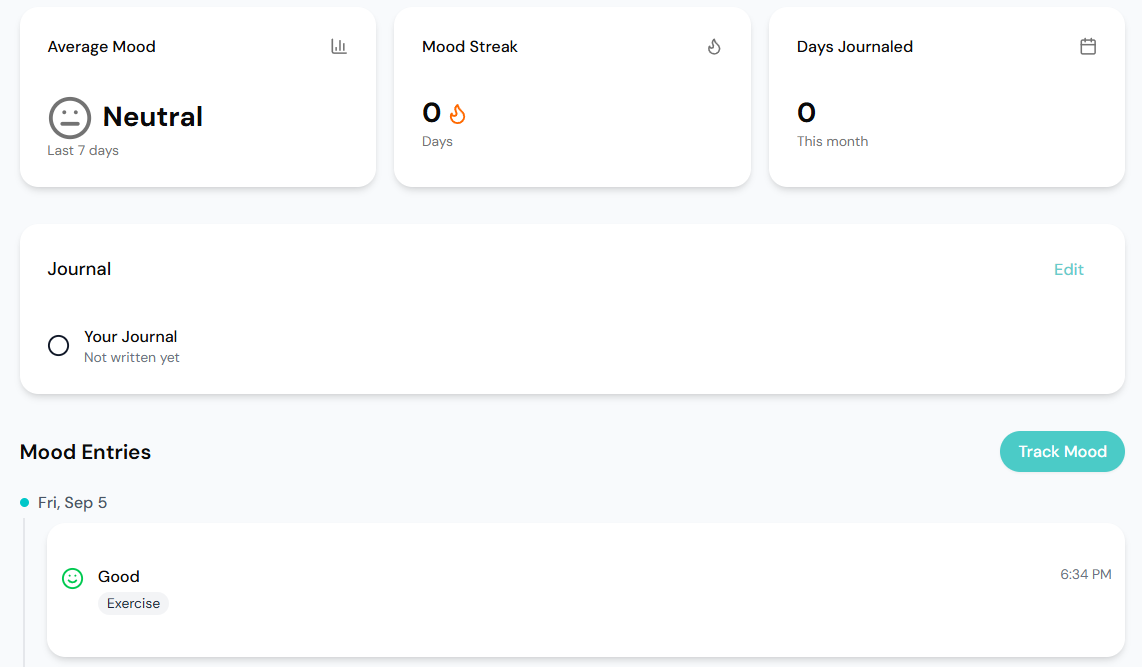 - Mood Trends: Visual chart showing mood patterns over time
